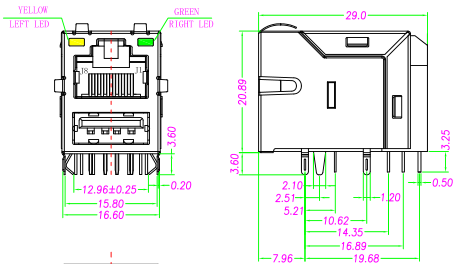 6.RJ-45 Contact plating: Gold 6 micro-inches min.