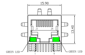 Green LED Rj45 , LPJ0011GFNL 10/100Mbps Ethernet 90 Degree 8Pins Connector Images |
