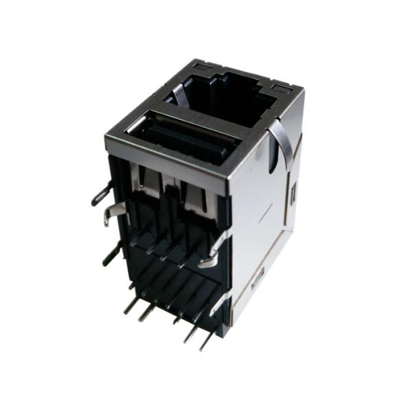 1840024-2 RJ45 USB Connector , 10 / 100 / 1000Base-T Magnetics with 2 USB Port Images |