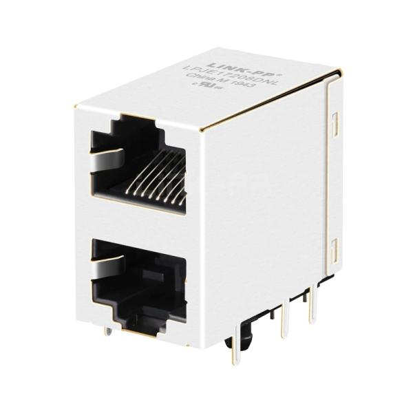 This connector features a dual-port (2 x 1 stacked) configuration—two RJ45 jacks vertically aligned.