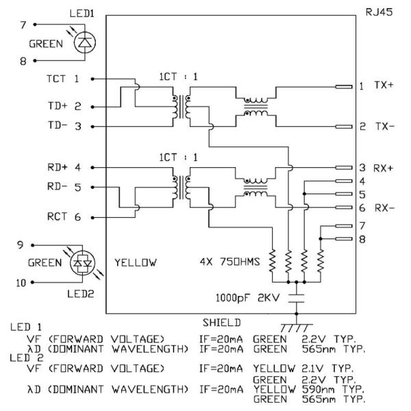 08B0-1K1T-06-F Rj45 Magjack Electrical Schematic: