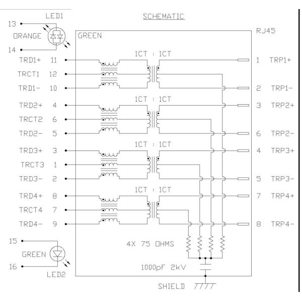 L826-1M1T-43-F Low Profile Rj45 Connector Electrical Schematic: