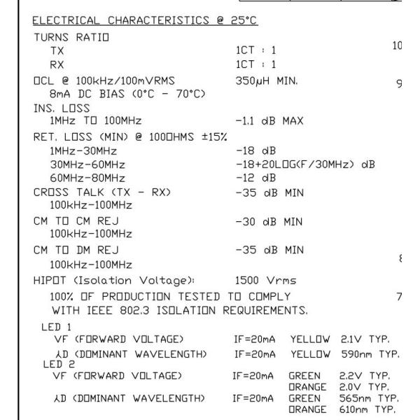 0875-1X1T-P2 6 Pin Rj45 Magjack Electrical Schematic: