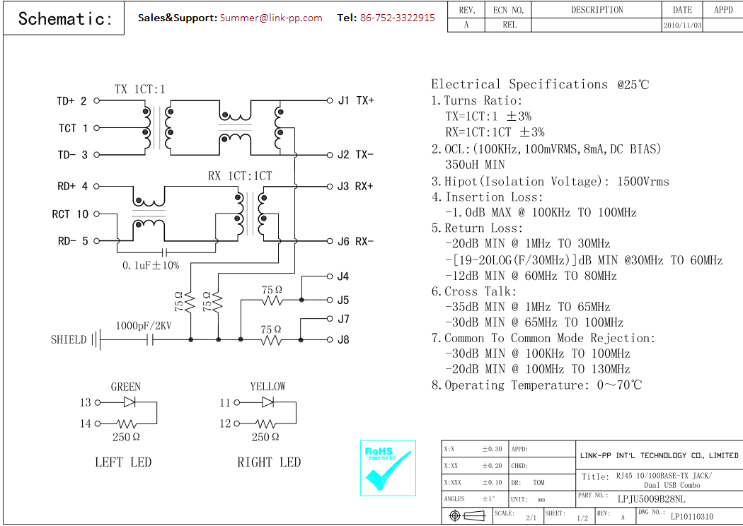 C893-1AX1-E1 | LPJU5009B28NL | LINK-PP | 10 / 100Base-TX RJ45 With Dual USB |