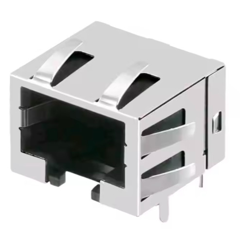 The 1734795-5 is a shielded 8P8C RJ45 jack designed for Ethernet connections, supporting Category 3 (Cat 3) performance. It features a right-angle (90°) orientation, making it suitable for space-constrained PCB designs. The connector uses gold-plated phosphor bronze contacts for reliable signal transmission and corrosion resistance. With a through-hole solder mounting design, it ensures strong mechanical stability. The product is RoHS compliant, lead-free, and meets UL 94 V-0 flammability standards, making it ideal for industrial and networking applications.